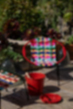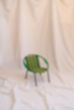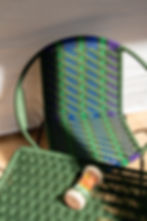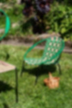 Armature en fer à béton forgée, soudée à la main et traitée anti-rouille. Tressage de fils de pêche teinté en polypropylène.